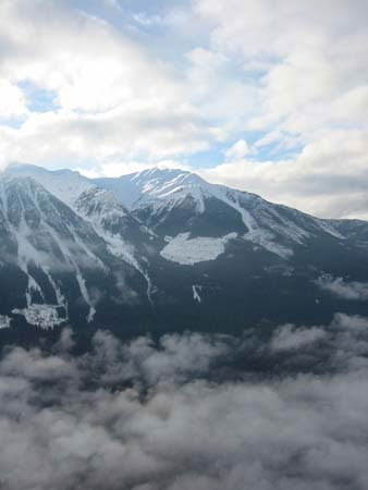 Needless to say, the flight into Chatter Creek was spectacular. This photo shows the view from the helicopter window looking southwest from Golden; we've just past Kicking Horse Ski Resort, which is just outside Golden to the south.