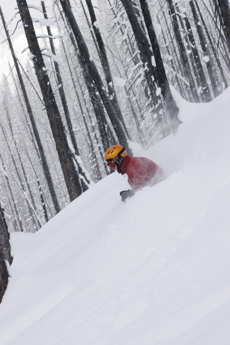 Greg reminded Gene and Joni of me last year when I wore my yellow helmet and red jacket. Lucky for Greg, the snow this year was much better, and deeper, as this photo shows.