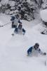 The photos below are a small sample of our experience. The web travelogue from our 2005 trip described all aspects of our tour, e.g., snowcats, accommodations, and the skiing. This year’s report focuses on the skiing, because the conditions were much different than in 2005. Last year was a dismal snow year, so we skied mostly above the tree line (which was great). This year is a terrific snow year—so good that we rarely skied in the alpine because of poor visibility and the avalanche danger, so we stayed in the trees. It snowed almost continuously during our tour.