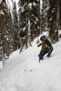 The conditions at Chatter Creek were very good, but not as good as our 2006 and 2008 tours. The visibility and conditions in the alpine were suboptimal and the avalanche danger was high, so we skied mostly in the trees or just above tree line. The photos below were taken on Sat. Feb. 1, our second day of skiing.